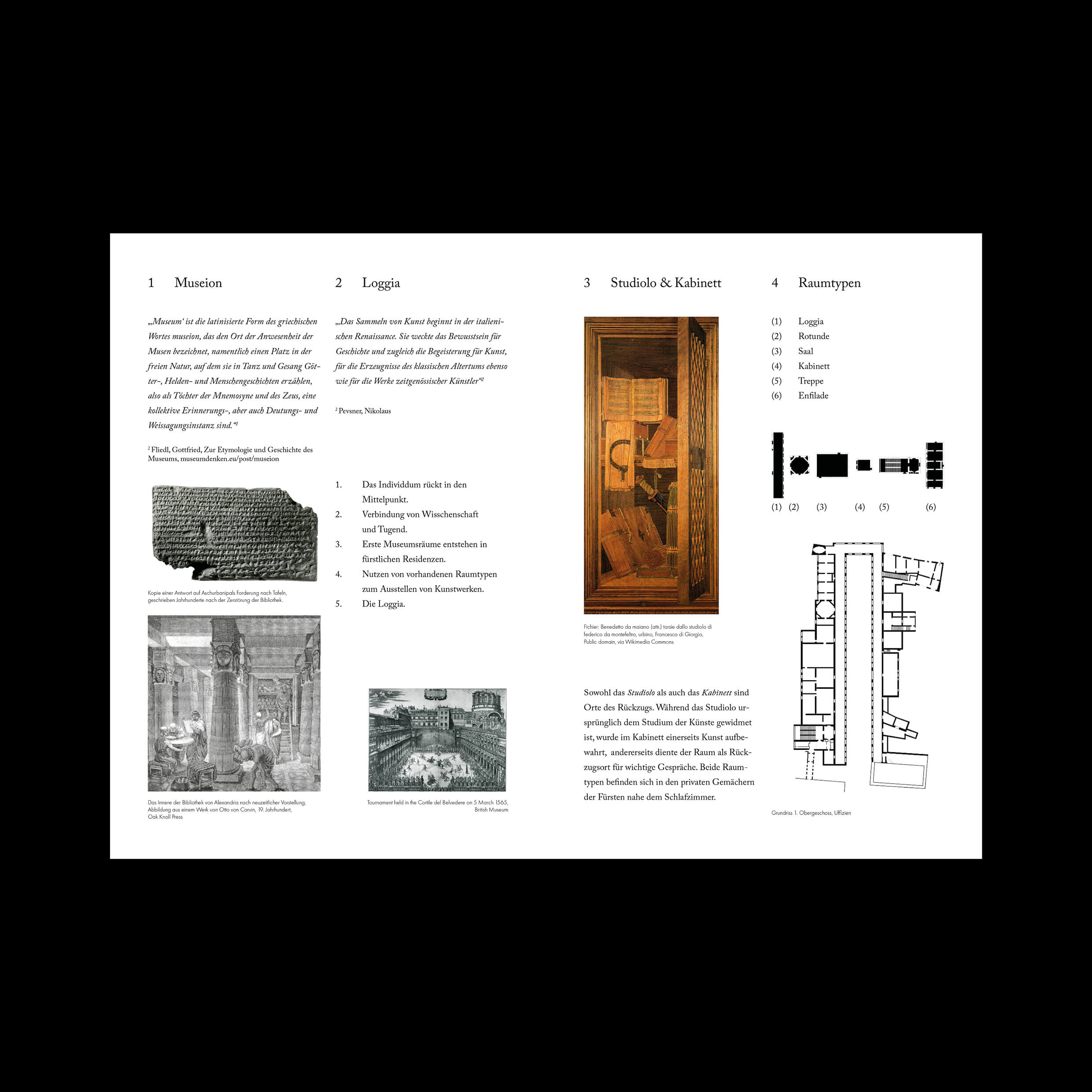 Caroline Schulz has developed an architectural education program for the Kunstmuseum Bonn, aimed at bringing the typology of the art museum closer to visitors. The program covers the historical context of the Bonn Art Museum within architectural history, as well as the general emergence of art museums. It also delves into the specific history of the Bonn Art Museum and the curatorial perspective on working with architecture. To support this program, Caroline Schulz conducted extensive research and created a booklet for each of the three tours, which further emphasizes the findings of her research.